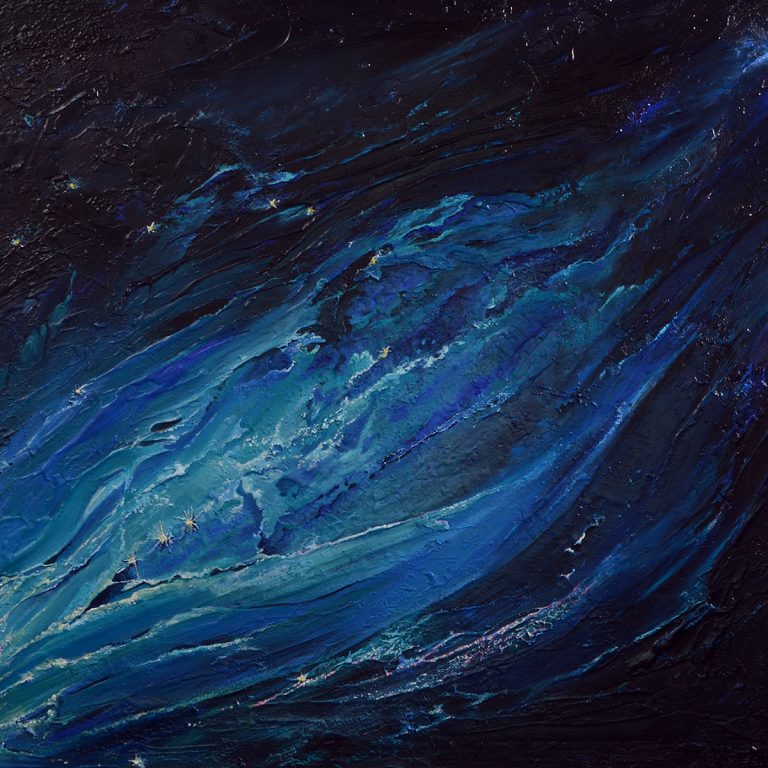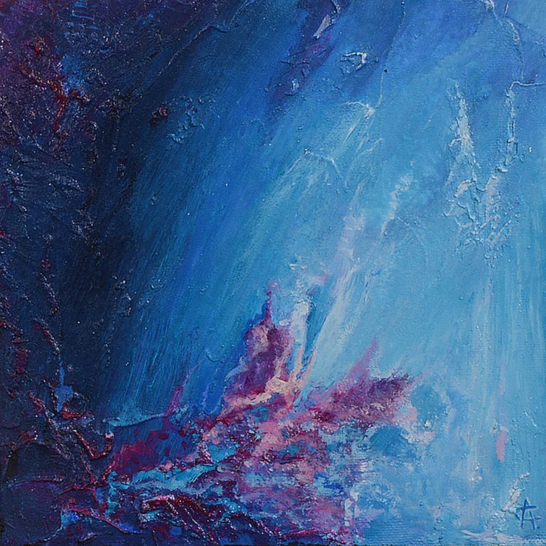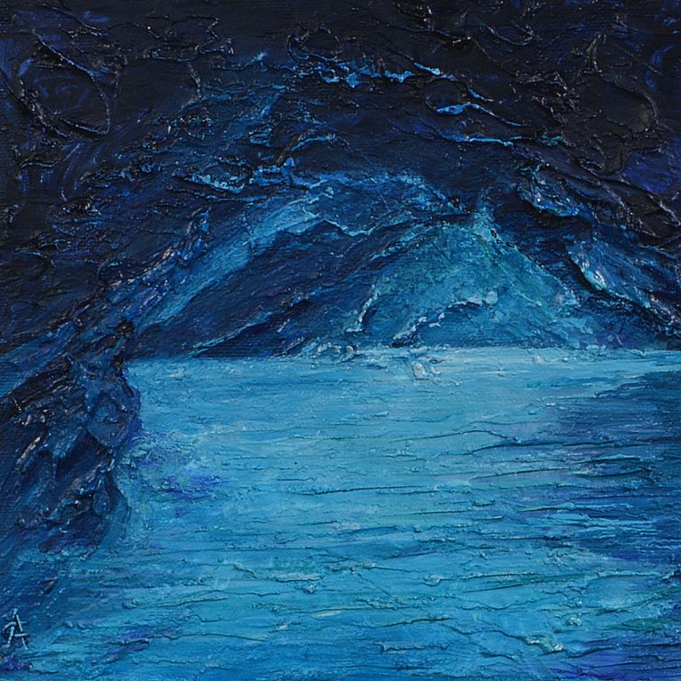 Il trittico formato da Bianca, Viola 2 e Azzurra, insieme alle ultime creazioni che vanno dal 2016 al 2023, fanno parte della ricerca espressiva elaborata nello studio “Le Grotte dell’Anima”, in cui la composizione polimaterica della pittura astratto – informale, esprime il dialogo tra la materia e la rappresentazione delle forme aniconiche del pensiero e delle idee che vivono nascoste e custodite nell’Io interiore, come nelle profondità buie di una “Grotta” illuminata da una flebile luce di vita e speranza.